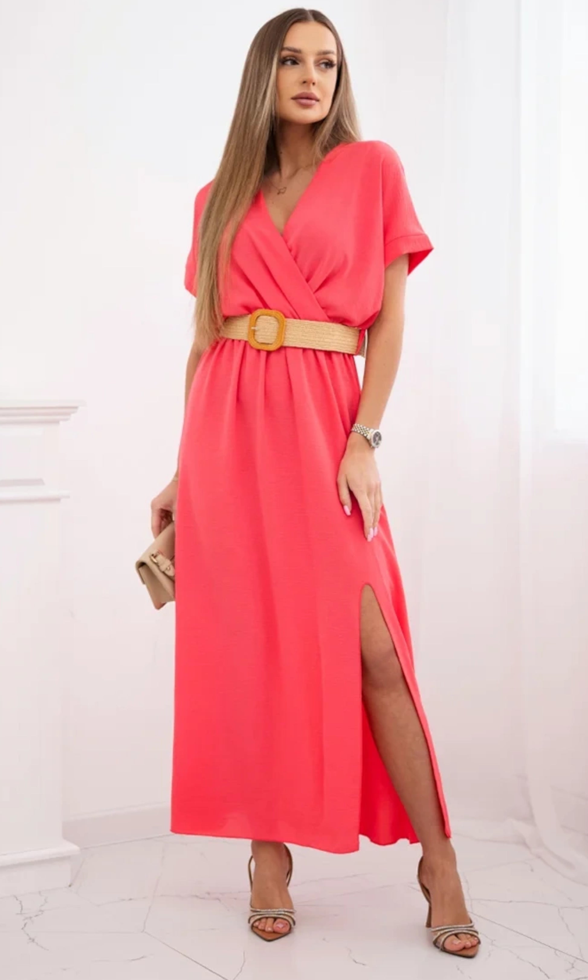 Oehlala deze jurk roze Jaylinn is toch heerlijk zomers. Je kunt haar uitstekend dragen naar je werk met bijvoorbeeld een sandaaltje of een sneaker. Voor een feestelijke look kun je dit geweldige jurkje dragen met een elegant hakje. De riem zit bij dit jurkje inbegrepen.