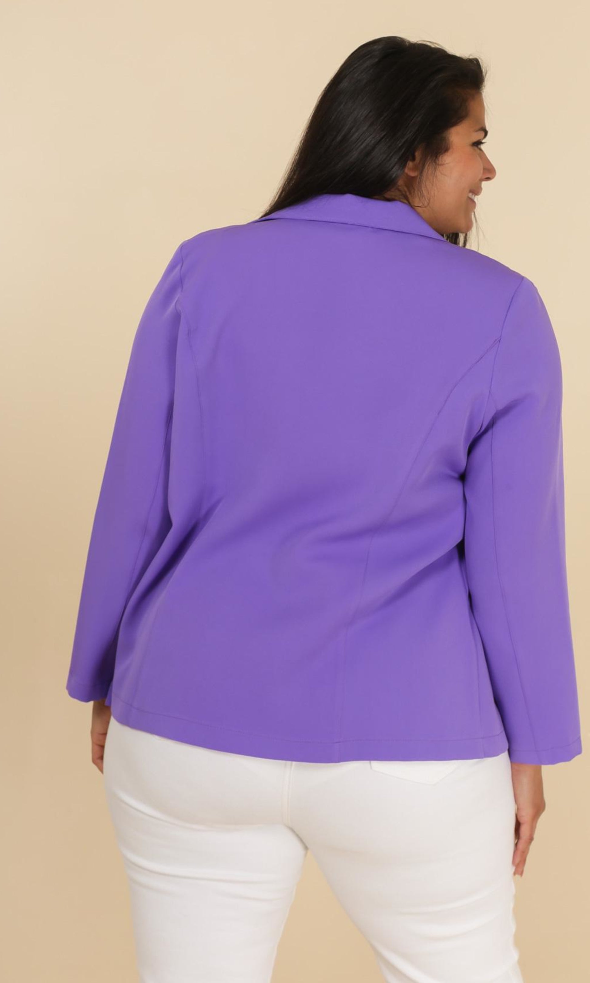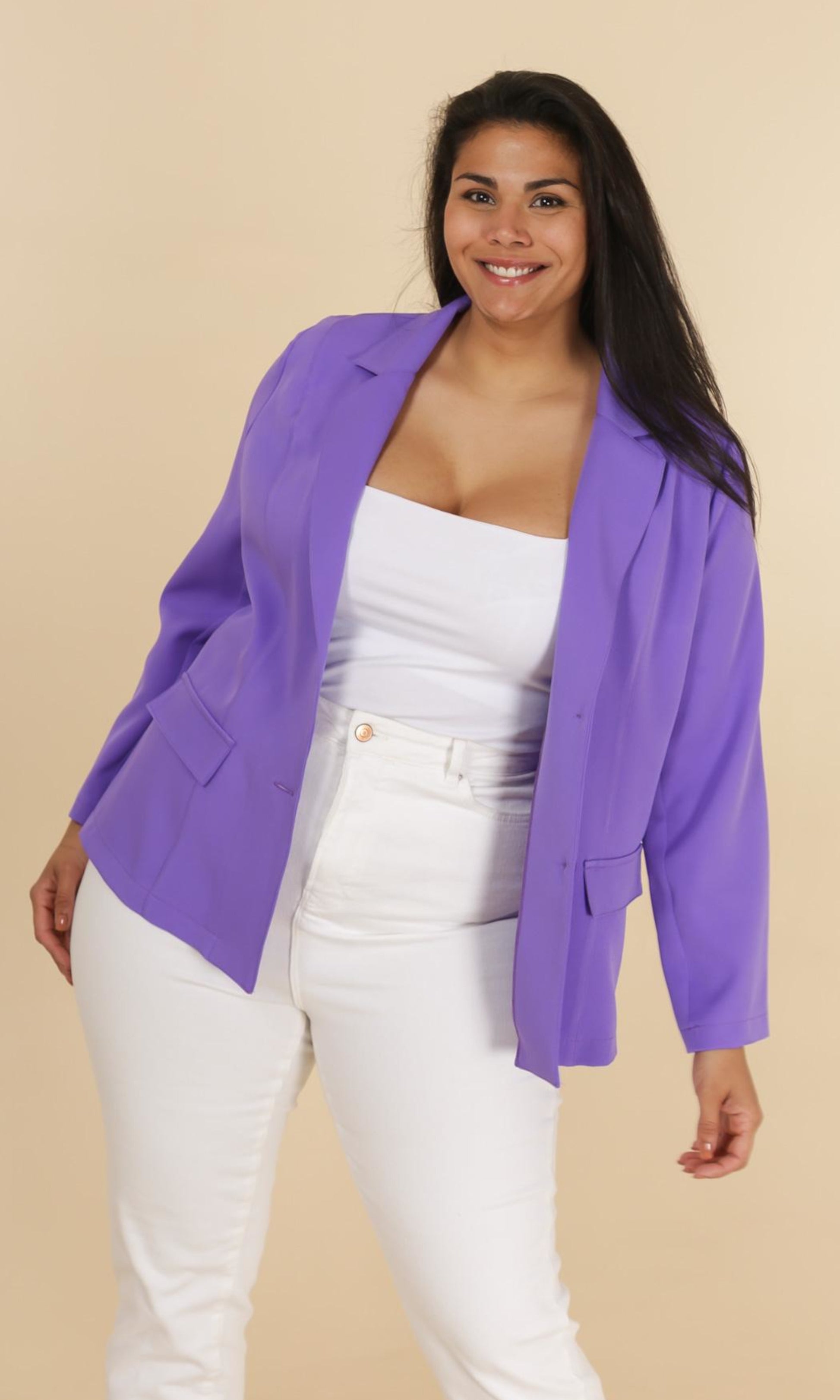 Deze plussize blazer lila Diana is niet alleen van mooie kwaliteit maar heeft ook een schitterende kleur. Je kunt haar eindeloos combineren. Ook is ze voorzien van een knoopsluiting. Verkrijgbaar in de maten 42 t/m 52