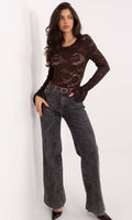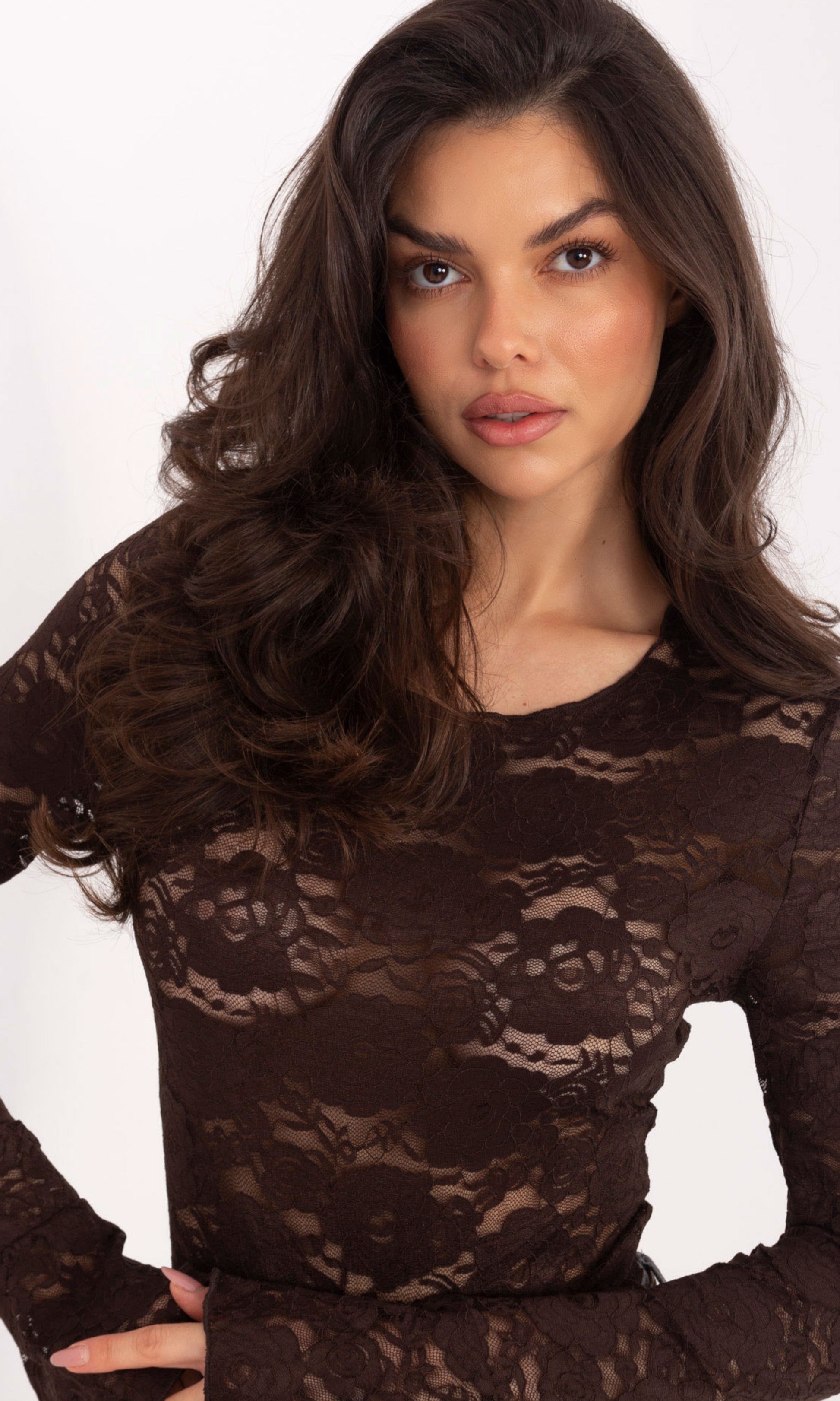 Wauw! dames deze body bruin met kant Suzy mag je echt niet missen. Echt een fantastisch item om te shinen. Ze is gemaakt van de kleur bruin en er is een prachtige kant in de stof verwerkt. Je kunt deze body heel leuk combineren op een pantalon, maar ook op een rokje.. :-) Prachtig detail zijn de uitlopende mouwen. Hou je van stijlvolle mode? dan is dit item zeker geschikt voor jouw..